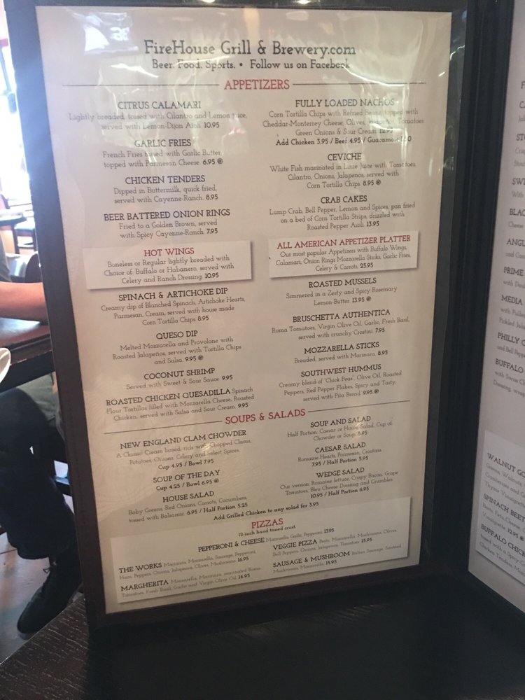 Firehouse Grill and Brewery Menu (Update 2025)
